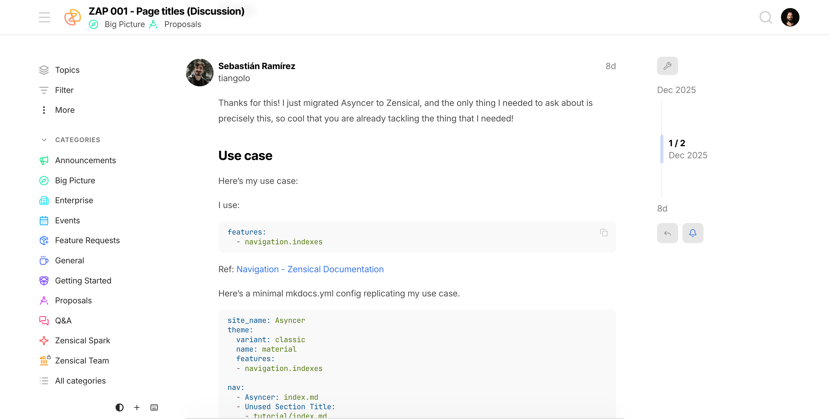 In Zensical Spark, we create Zensical Advancement Proposals (ZAPs), giving our members early access to designs and prototypes while they're still taking shape, and before implementation work begins. Rather than simply using finished work, members can directly participate in the design process, bringing in their organization's specific requirements and expertise. Excerpts from the latest ZAPs are publicly available: |