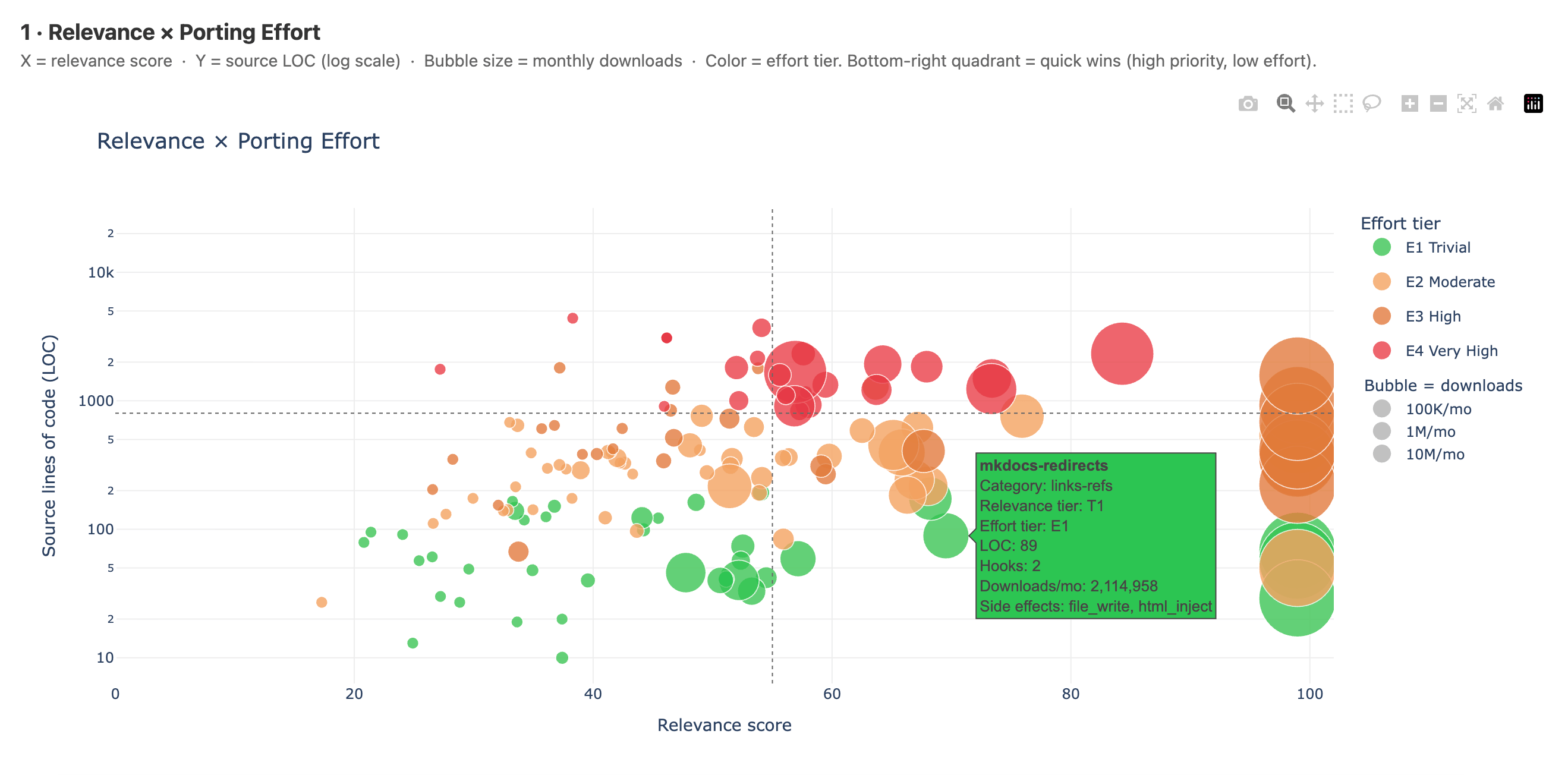 A small excerpt of the results of our MkDocs plugin ecosystem analysis, shared and discussed with our Zensical Spark members in our most recent open call